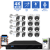 This Security Camera System is designed to deliver comprehensive protection in one powerful package. It includes 6 8-megapixel bullet cameras, 6 8-megapixel turret cameras and a versatile 16-Channel 4K NVR that lets you record footage locally with no monthly fees. With built-in microphones and night vision capabilities, these cameras ensure clear audio and video monitoring day and night.