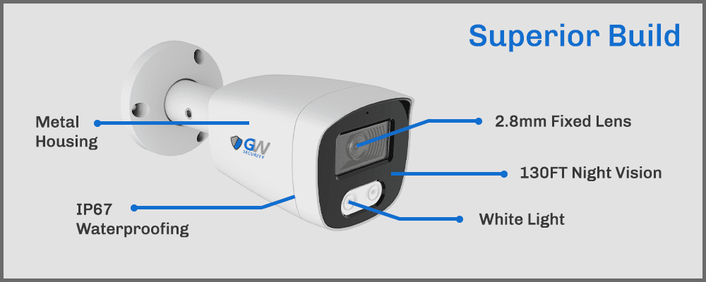 GW’s high-quality LEDs allow these HD IP cameras to see up to 130ft in complete darkness for 24-hour-a-day protection. GW Cameras use the latest high intensity IR LED technologies for maximum coverage. The image shown is an actual capture from a 4K camera in total darkness.