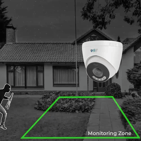 The cameras IR lights enable clear black and white recording discreetly in low light environments. When an event occurs, the bright white LEDs activate, deterring potential thieves and allowing for full-color recording.