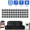 This Security Camera System is designed to deliver comprehensive protection in one powerful package. It includes 32 8-megapixel Turret cameras and a versatile 32-Channel 4K NVR that lets you record footage locally with no monthly fees. With built-in microphones and night vision capabilities, these cameras ensure clear audio and video monitoring day and night.