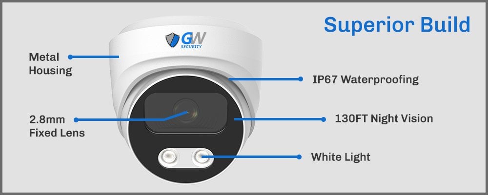 GW’s high-quality LEDs allow these HD IP cameras to see up to 130ft in complete darkness for 24-hour-a-day protection. GW Cameras use the latest high intensity IR LED technologies for maximum coverage. The image shown is an actual capture from a 4k camera in total darkness.