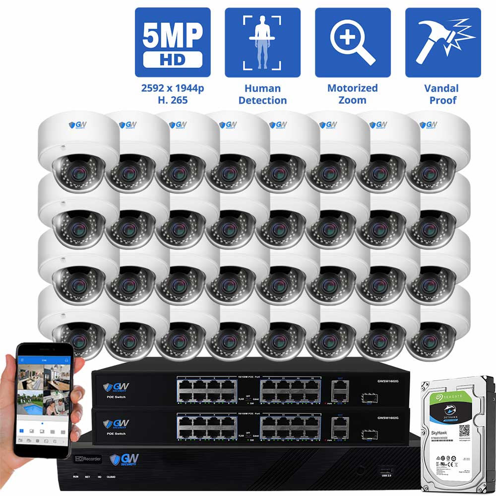 GW Security 32 Channel IP 5MP Security Camera System 32ch NVR & 24 x 5MP IP66 2.8 -12mm Motorized Lens Dome Vandal Proof Security Camera, Video Surveillance System for 24/7 Recording