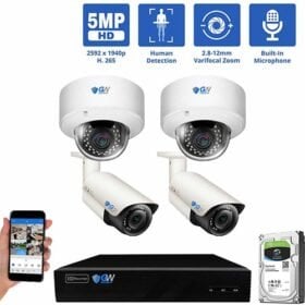 GW Security 8 Channel Security Camera System, 5MP (2592x1944p) 2.8-12 mm Varifocal Lens 4x Optical Zoom PoE IP 2 Dome 2 Bullet Cameras & 4K NVR