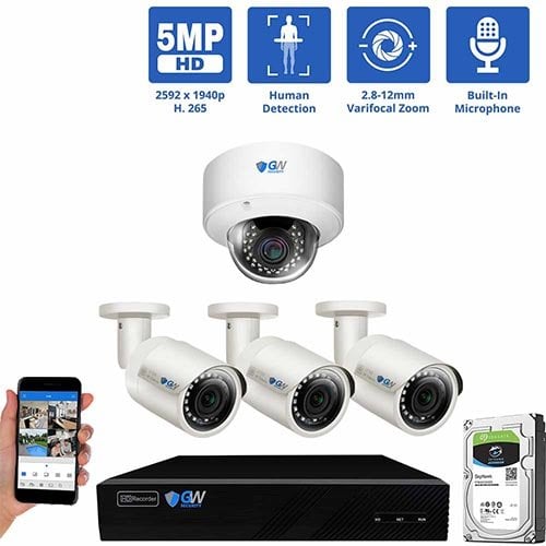 The newest generation of security camera systems is here. With Commercial 5MP resolution, this surveillance system from GW Security will bring a brand new level of detail to your security monitoring. This system includes our GW42-4208P-2 4K Network Video Recorder with built-in POE switch to avoid extra equipment. Whether you are looking to monitor your business or protect your home, this powerful security camera system will help you secure the things that matter most.