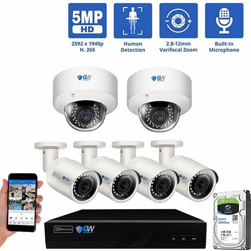 The newest generation of security camera systems is here. With Commercial 5MP resolution, this surveillance system from GW Security will bring a brand new level of detail to your security monitoring. This system includes our GW42-4208P-2 4K Network Video Recorder with built-in POE switch to avoid extra equipment. Whether you are looking to monitor your business or protect your home, this powerful security camera system will help you secure the things that matter most.