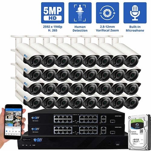 GW Security 32 Channel 5MP 1920P IP PoE Security Camera System, 4K NVR with 32 × Outdoor/Indoor 2.8-12mm Varifocal Zoom 5.0 Megapixel 1920P Cameras